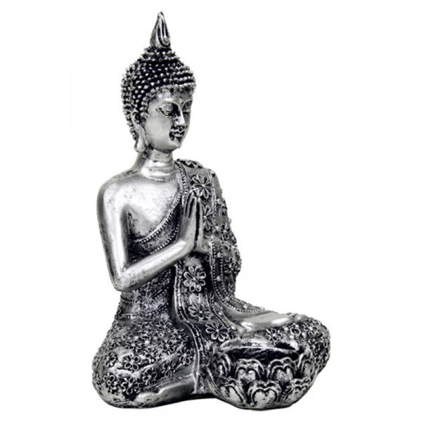 Biddende Boeddha zilverkleurig Thailand — 105g;7.5x5x11.5cm