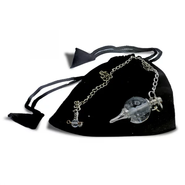 Pendel gepolijst bergkristal & metaal — 12 g; 3.5×1.7 cm
