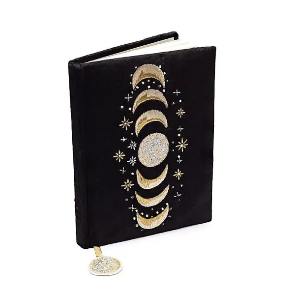 Notitieboek fluweel zwart met maanfasen – 20 cm x 15 cm