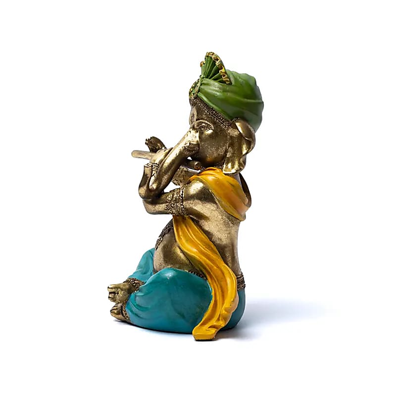Kleurrijk beeld van Lord Ganesh die op een fluit speelt.