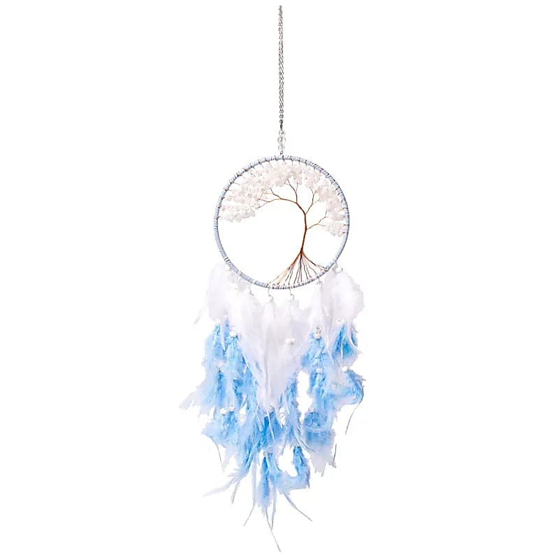 Een dromenvanger, opgehangen boven of nabij het bed en vrij bewegend in de lucht, zou deze dromen filteren.