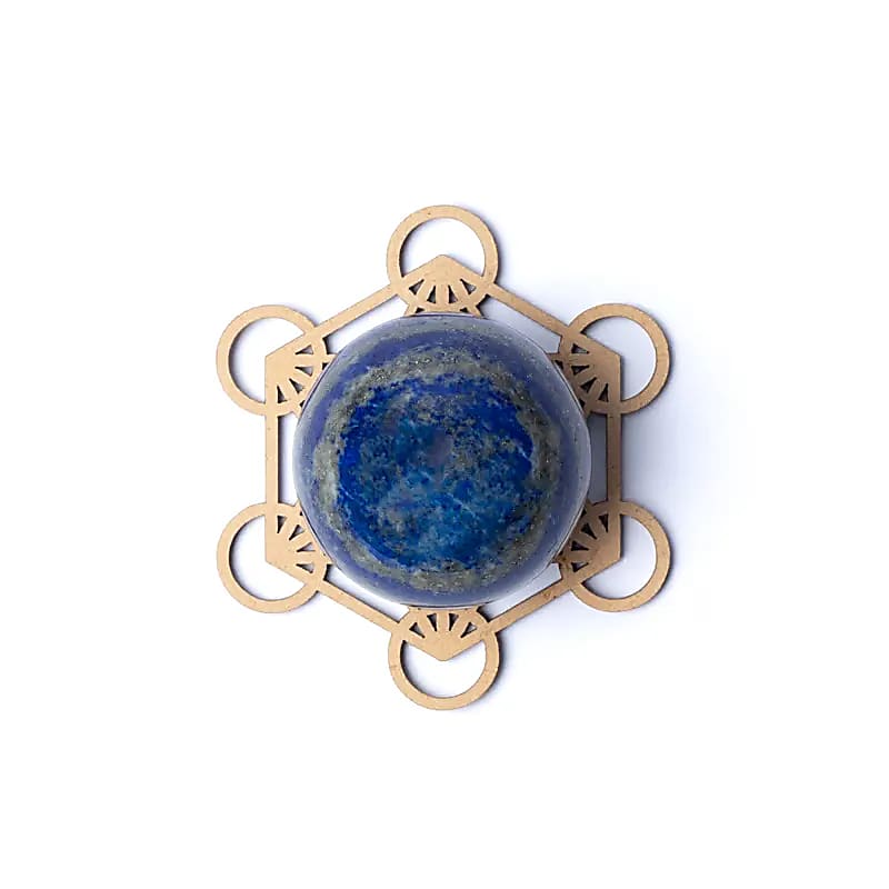 Uit MDF (composiet houtvezelpaneel) lasergesneden edelsteenhouder, in de vorm van een Metatron’s kubus.