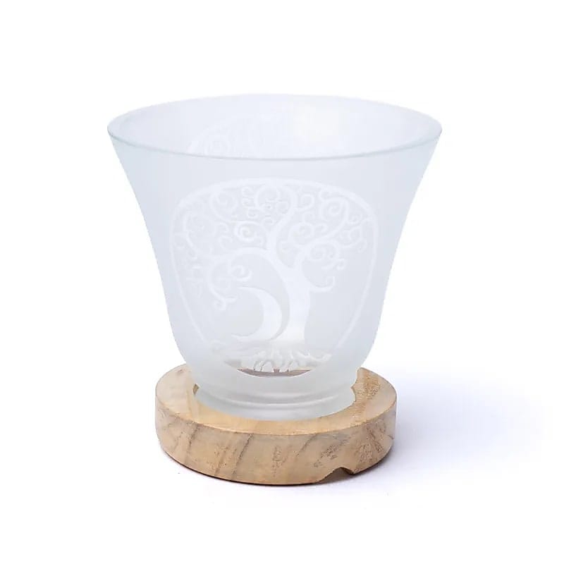 Melkglazen edelsteenlamp met Levensboom symbool. Edelstenen niet inbegrepen.