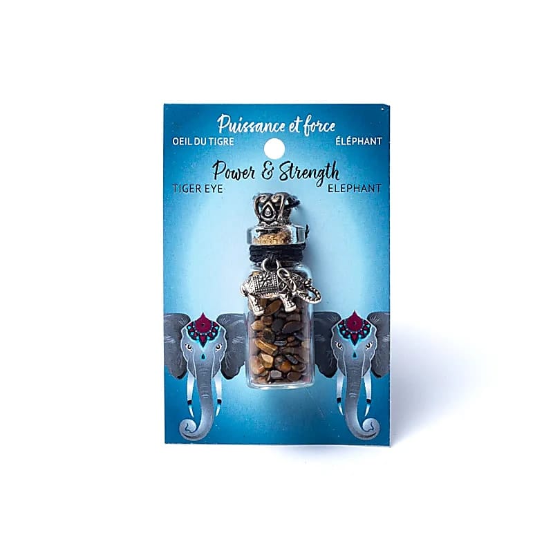 Geschenkflesje aan koord met tijgeroog en olifant – 3.6 cm