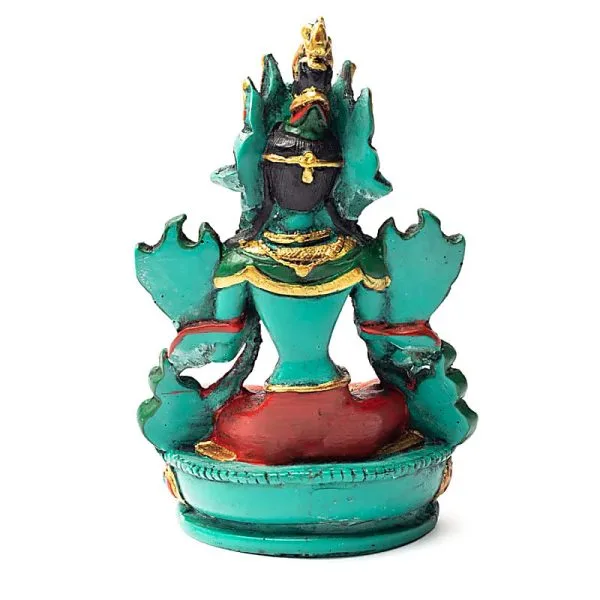 Haar houding, met één been gestrekt, weerspiegelt haar bereidheid om degenen die haar aanroepen te hulp te schieten.