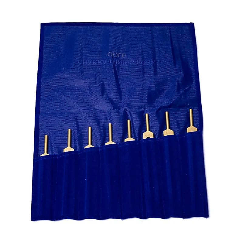 Set van 8 ongewogen stemvorken, één voor elke chakra.