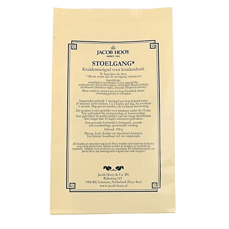 Stoelgang thee van Jacob Hooy, voor het natuurlijk behoud van een gezonde stoelgang.