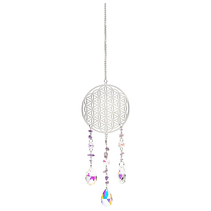 Home » Home & Living » Suncatcher Bloem des Levens zilverkleurig met amethist – ±8 cm