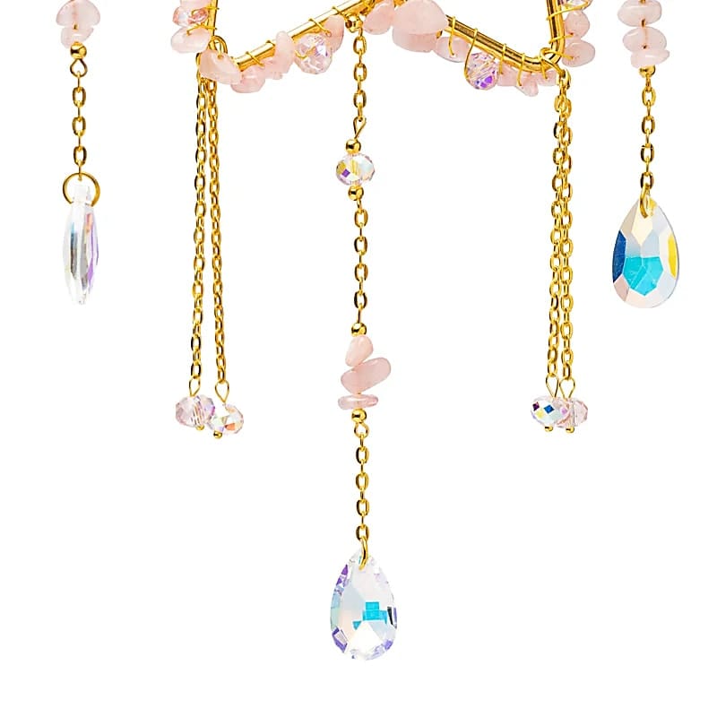 Rozenkwarts staat symbool voor liefde, zachtheid en harmonie, waardoor deze suncatcher niet alleen decoratief is maar ook betekenisvol.
