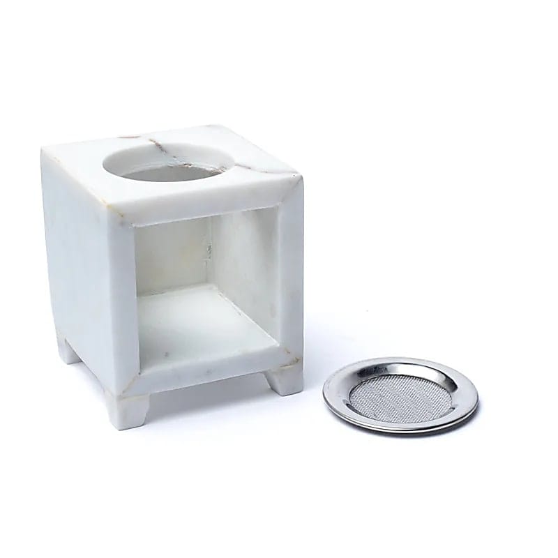 Marmeren wierookbrander met RVS zeef, 6 cm doorsnee.