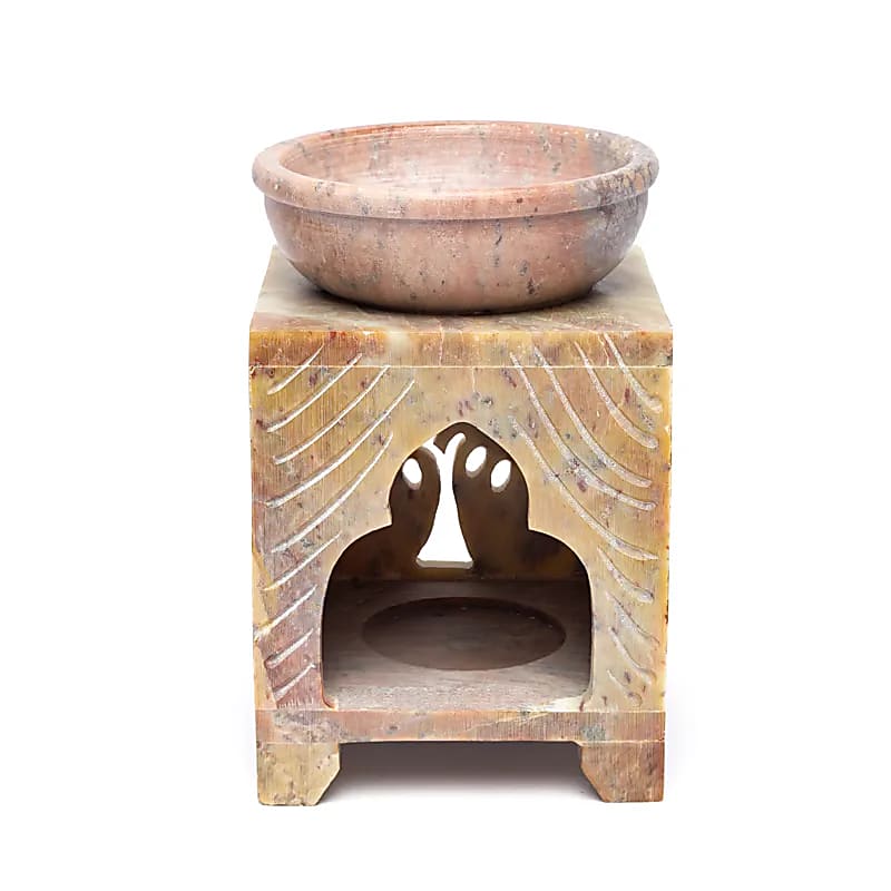 Wierookbrander en olieverdamper Levensboom zeepsteen – 10 cm x 7.5 cm
