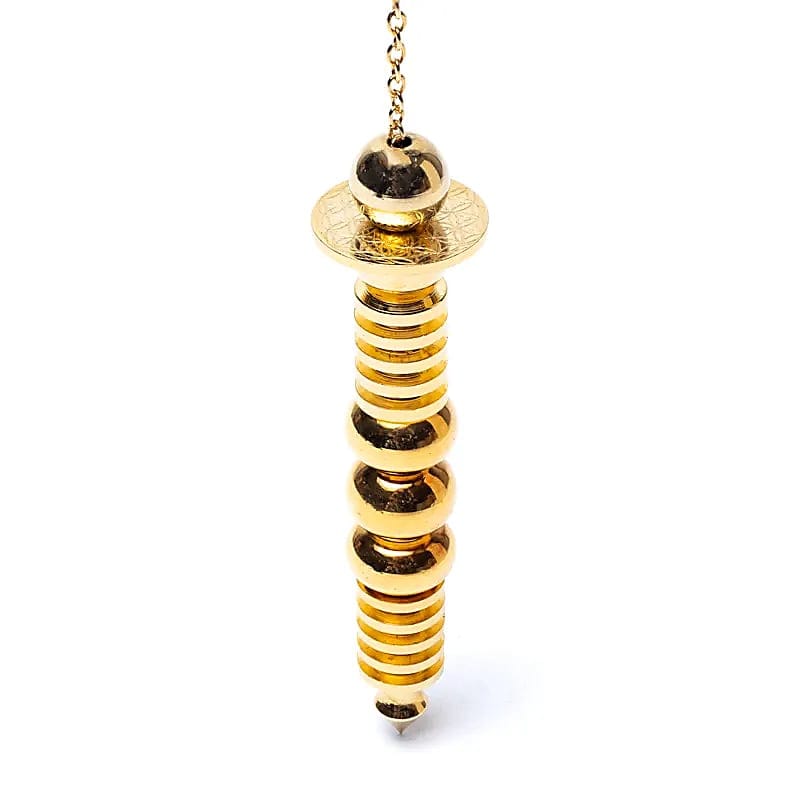 Home » Spiritualiteit » Pendels en wichelroedes » Pendel met kamer messing verguld Bloem des Levens – 9 cm