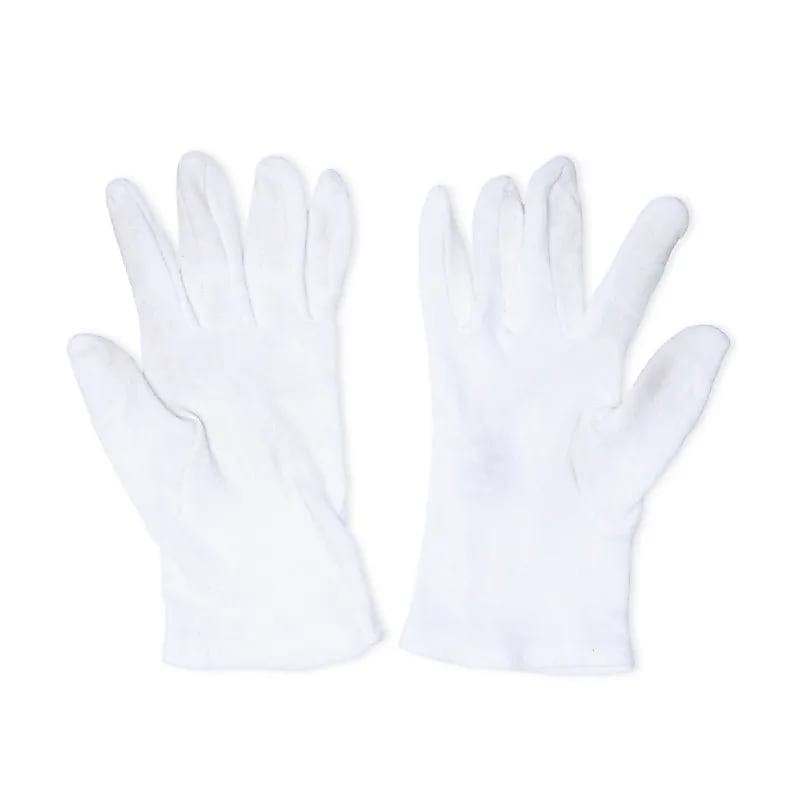 Elke verzilverde klankschaal wordt geleverd met een katoenen tasje om hem te beschermen en op te bergen, en drie paar katoenen handschoenen in de maten M, L en XL.
