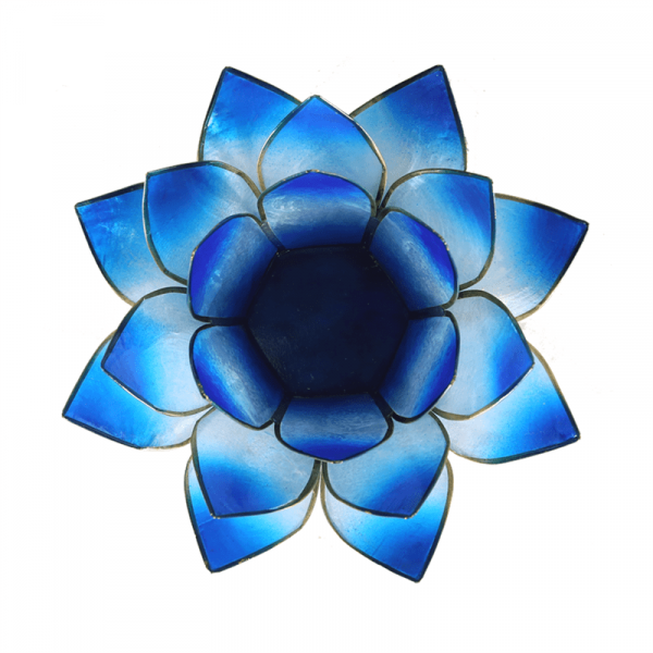Lotus sfeerlicht blauw 5e chakra goudrand — 13.5 cm